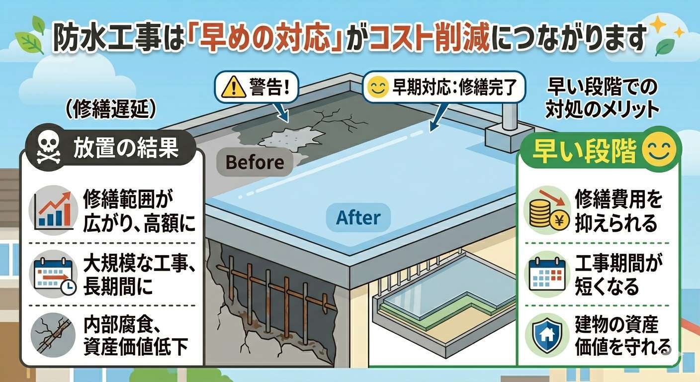 防水工事は「早めの対応」がコスト削減につながります